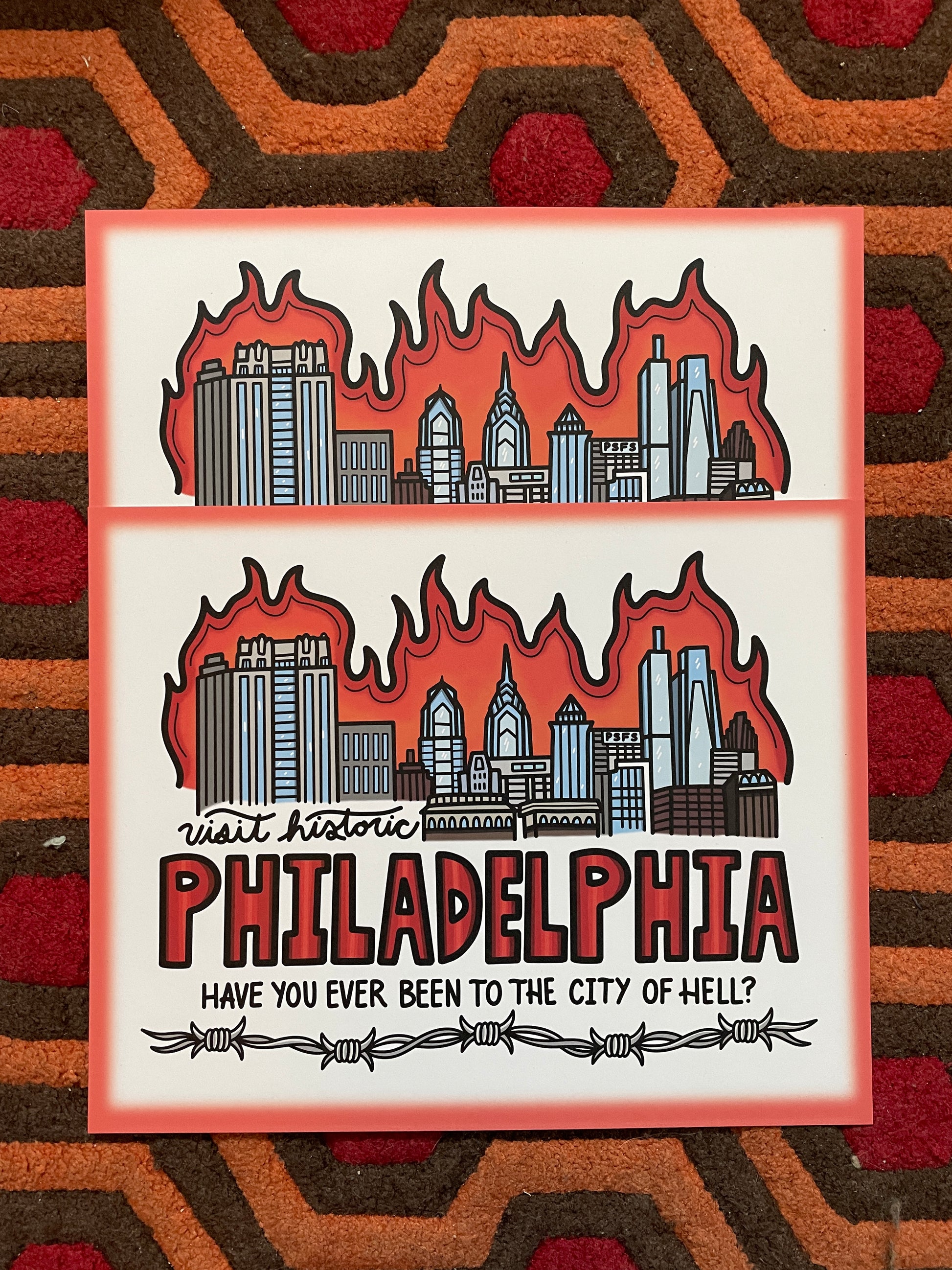 A print inspired by classic postcard designs in dedication to my favorite city in the world, have you ever been to the city of hell?